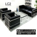 【楽天1位】ソファ ソファセット 応接セット 1人掛け 3人掛け LC2 グランコンフォール ル・コルビジェ リプロダクト ジェネリック家具 デザイナーズ家具 完成品 ポケットコイル アジャスター付 合皮 PUレザー ブラック 黒