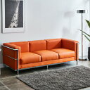 3人掛けソファー 1脚単品 ル・コルビジェ LC2 レプリカ仕様 応接ソファー デザイナーズソファー ジェネリック家具 合皮張り コルビュジェソファ コルビジェ リプロダクト店舗用 業務用 オレンジ 法人宛 送料無料 購入