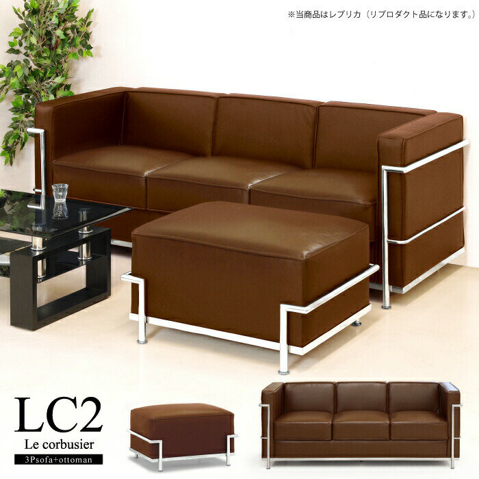 - 【楽天1位】ソファ ソファセット カウチソファ 3人掛け オットマン スツール LC2 グランコンフォール ル・コルビジェ リプロダクト ジェネリック家具 デザイナーズ家具 完成品 ポケットコイル アジャスター付 合皮 PVCレザー バイキャスト ブラウン